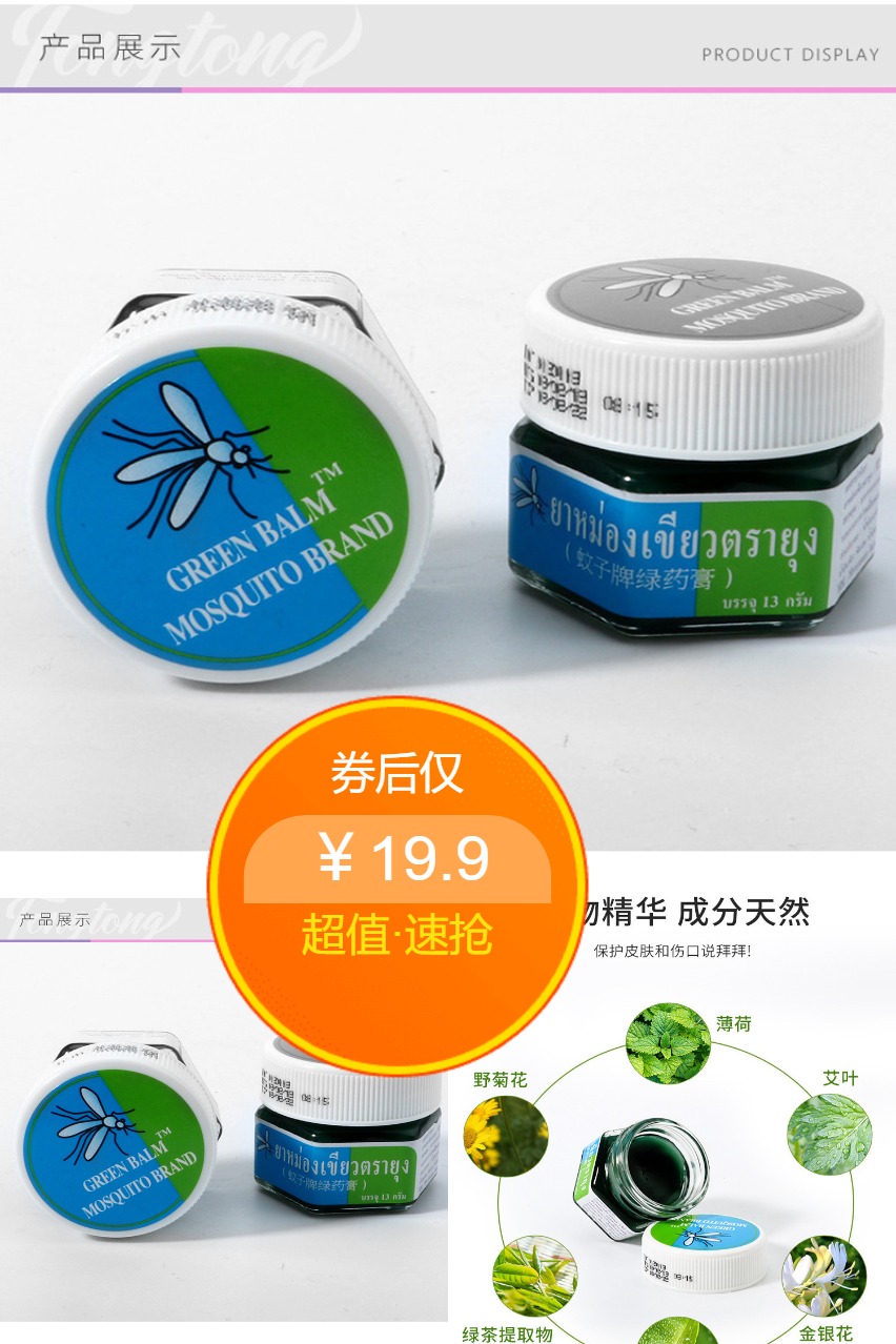 1、泰国配方驱蚊膏 到手价19.9 青草膏防蚊驱蚊 止痒清凉油,防晕车膏 驱蚊效果显著,夏日必备