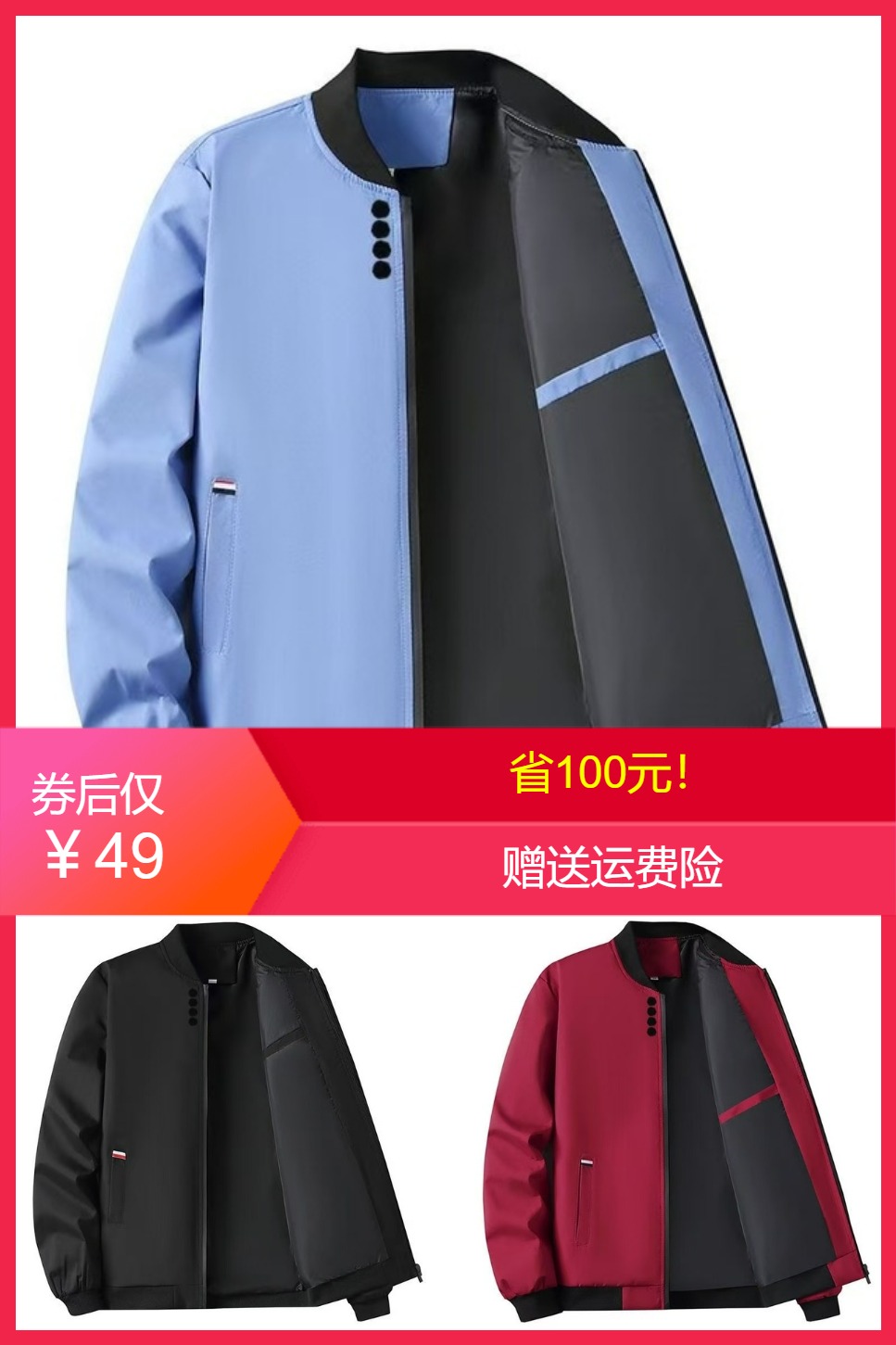 2、(运动无限123)男士外套春秋季中青年薄款夹克纯色百搭韩版修身休闲棒球领夹克男