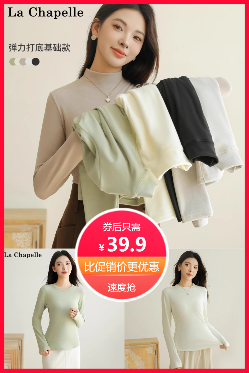 1、【拉夏贝尔】女秋冬半高领打底衫 劵后仅需要39.9 黑白色经典,秋冬内搭优选 2024最.新款,关键舒适百搭 速抢