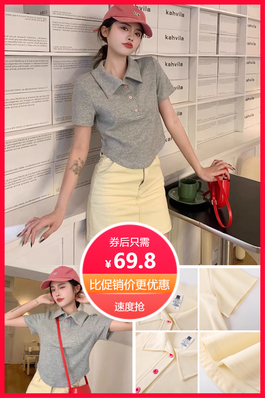 2、(拉夏贝尔休闲女装店)拉夏贝尔短袖t恤女2024新夏季正肩polo领衬衫小个子短款显瘦上衣