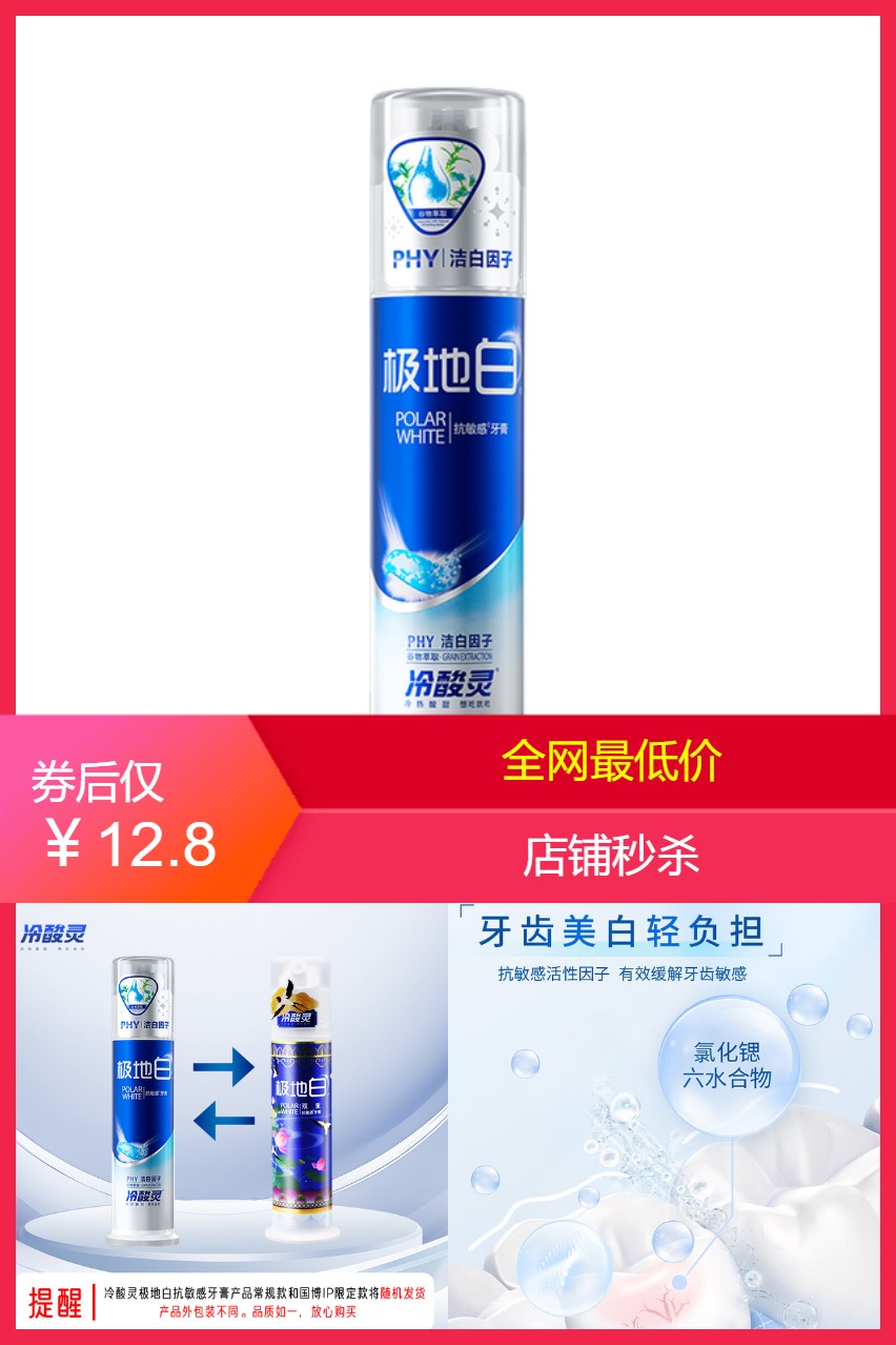 1、冷酸灵极地白牙膏泵式装 券后价12.8包邮 ✨双重抗敏,牙齿更洁白 薄荷香型,清新口气每一天