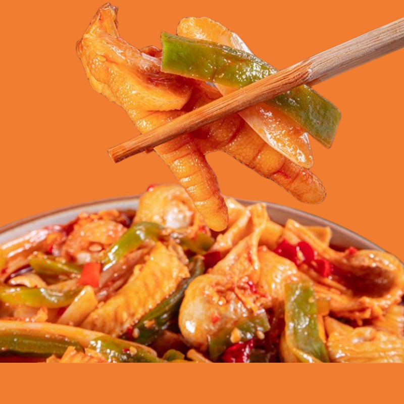 3、【爽脆口感!冷藏更好吃】0添加辣椒精和其他不必要添加!只用家用级调味料!吃着更放心!Q弹爽脆,倒在盘子里就是一盘菜!鸡爪和贡菜结合的口感超.美妙~