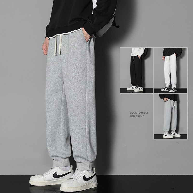 2022秋季新款休闲裤男士螺纹松紧小脚裤宽松卫裤纯色百搭运动长裤