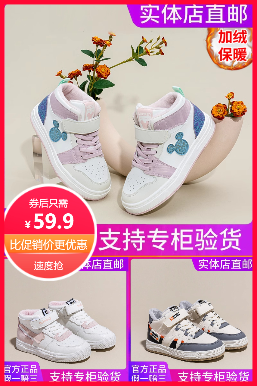 2、(淘宝内购会)迪士尼Disney正版童鞋男女童2024冬季新款儿童高帮运动鞋加绒板鞋