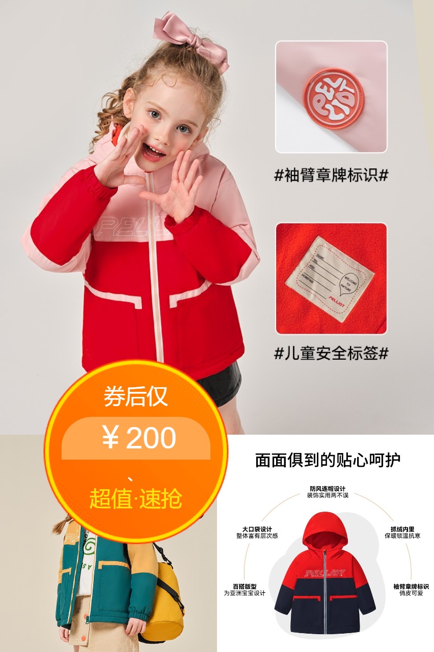 3、【清仓!可用消费券200-20,到手180元】防寒保暖,防风更实用。男女童都能穿,贴心护孩子。摇粒绒内里,更厚实柔软。时尚保暖,快乐童年每一天