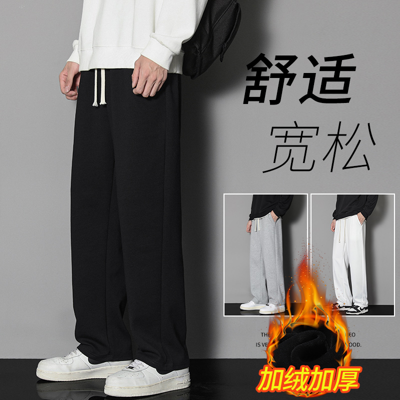 2、(杭烁旗舰店)休闲裤男加绒加厚秋冬季直筒长裤运动裤韩版宽松百搭潮流平脚卫裤