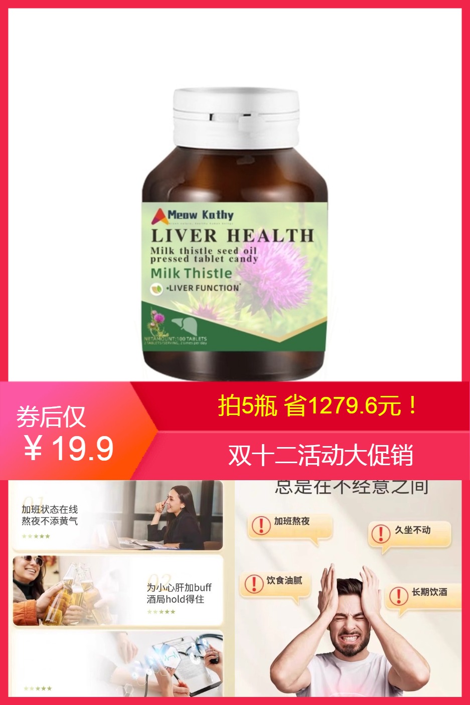 1、【拍5件!商品详情页右上角叠加淘金币仅19.5元!到手5瓶!】保护好自己的“小心肝”,养生内服要趁早!1粒顶其他牌子好几粒!护肝能力更好!!