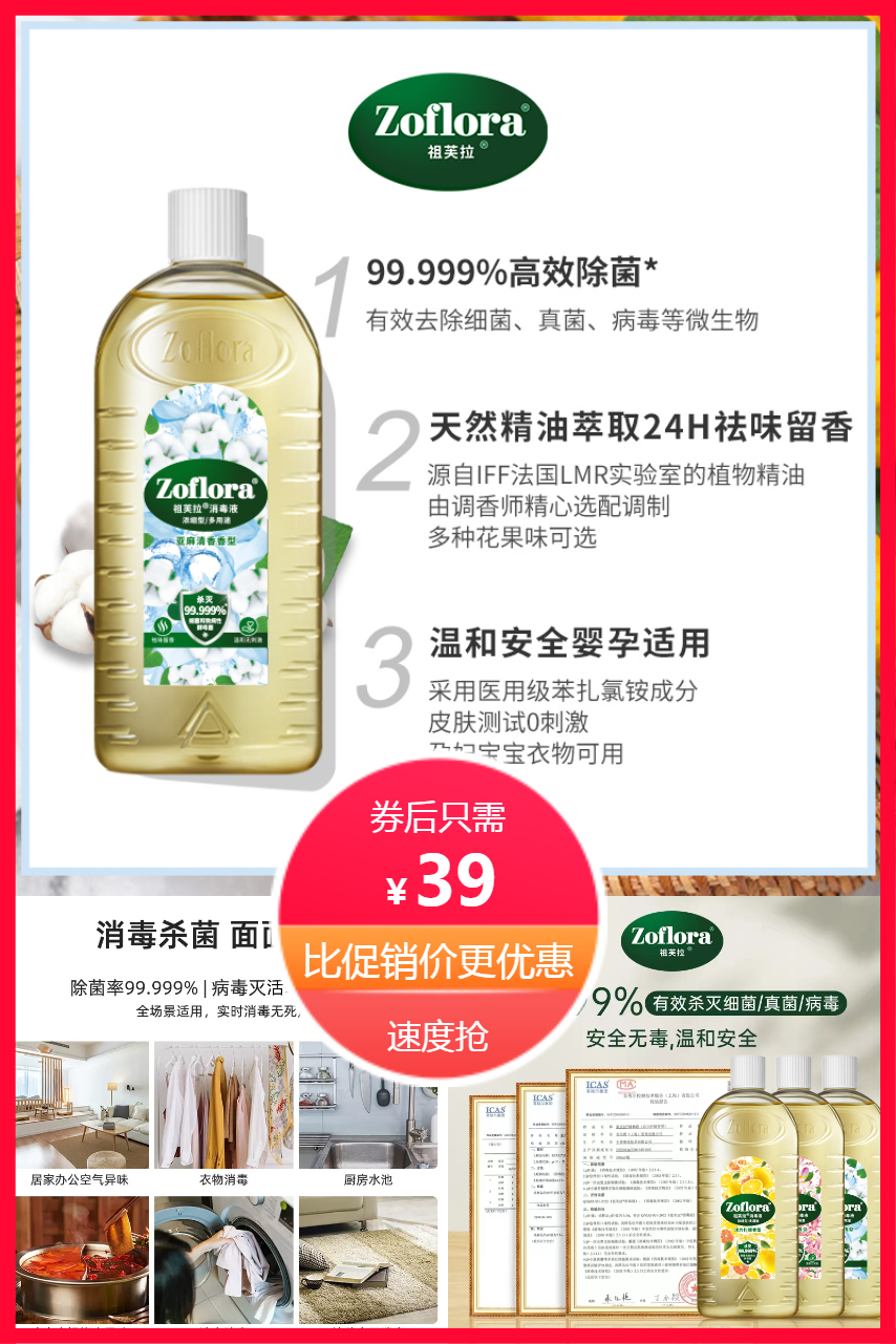 3、【Zoflora祖芙拉】来自英国的香氛消毒专家,祛除异味,安全无毒,温和不刺激,天然植物精油萃取,皮肤0刺激,安全无毒,宝宝爱宠都可以放心的使用~