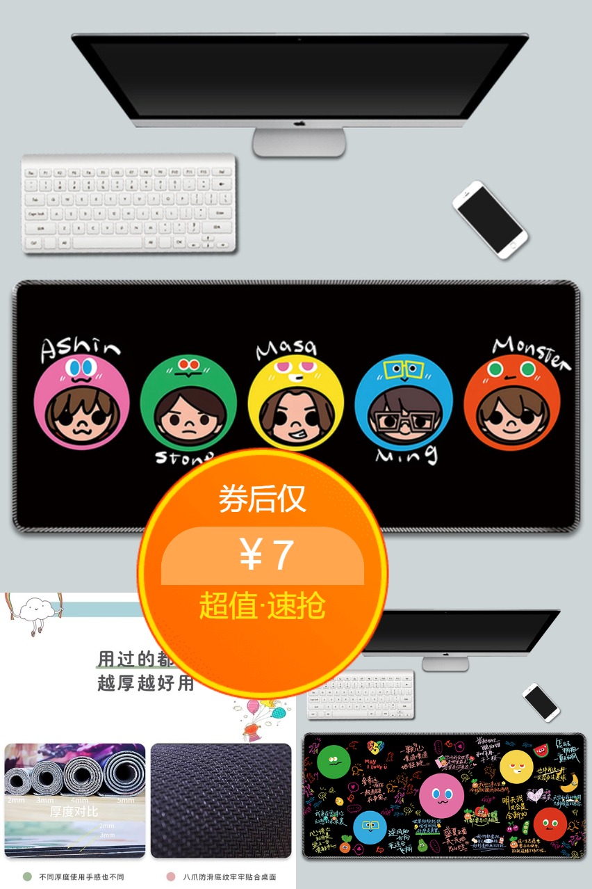 3、五月天鼠标垫来啦!阿信胡萝卜设计,独特又时尚!加厚耐用,手感超棒!演唱会键盘垫,专业又实用锁边技术,再也不怕污渍!为你的桌面上增添一抹色彩!