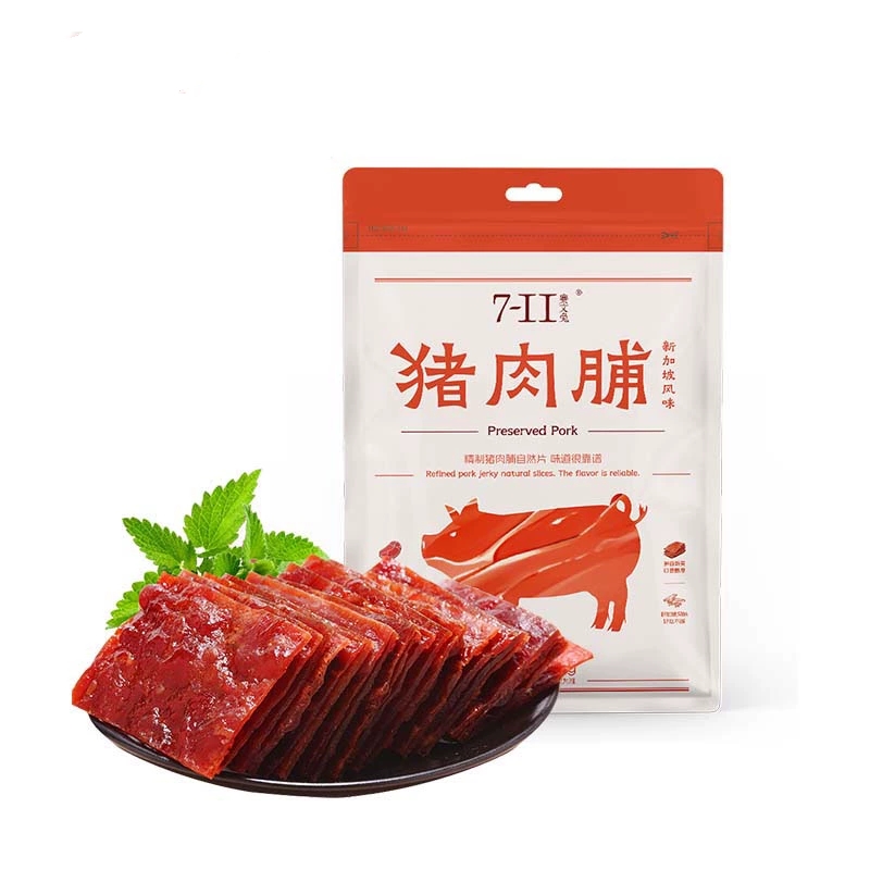3、赛文兔新加坡风味猪肉脯,独立包装8包。凑满减到手8.5。精制猪肉脯自然片,味道很靠谱。甄选优质猪后腿肉,甜咸兼具,香而不腻,肉质紧实耐嚼不干硬,满口留香不过柴。能吃到整片肉的好肉脯
