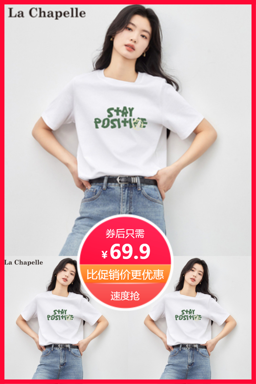 1、夏日炎炎 拉夏贝尔白色短袖T恤女2024新款爆款, 清凉又时尚!优惠多多 价格超值!现在入手 更享多重优惠! 夏日情侣装必备,快来选购吧!