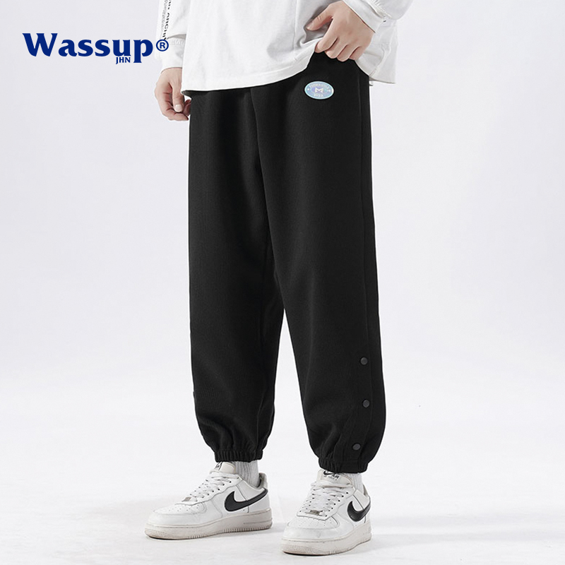 WASSUP JHN束脚裤情侣款秋冬季保暖加绒休闲运动裤美式休闲长裤男