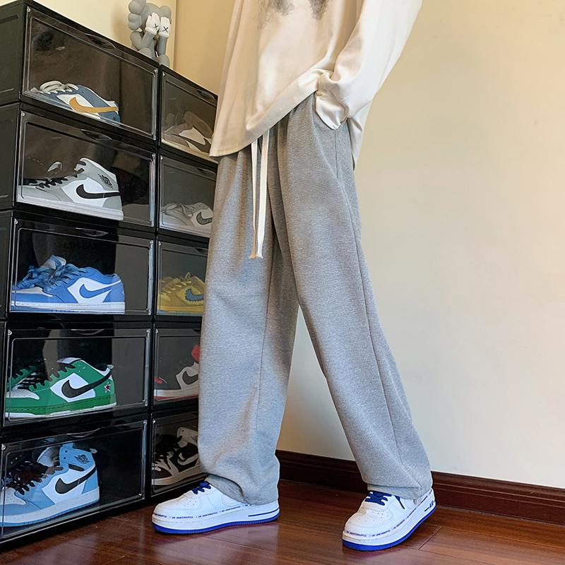 2、(轻迹男装旗舰店)秋季华夫格运动裤子男士宽松高街直筒垂感阔腿休闲长裤潮牌卫裤