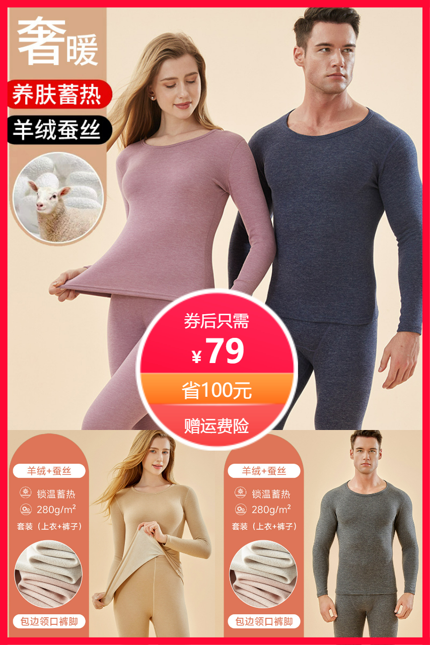 1、羊绒蚕丝保暖内衣套装 79.00,赠运费险✨ 男女同款,内搭外穿都时尚 保暖轻盈,从早暖到晚,舒适不臃肿 贴肤软糯,透气吸湿,冬日必备