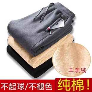 纯棉羊羔绒休闲裤冬季加绒加厚保暖裤子男中老年棉裤男士宽松卫裤