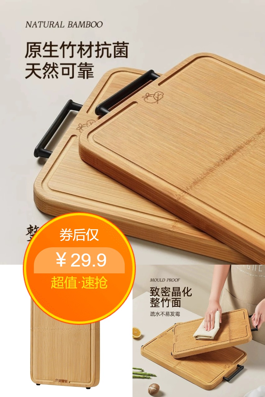 1、【双面整竹】抗菌防霉家用切菜板 券后仅需29.9 无漆无蜡耐砍耐剁 双面整竹 耐用更健康 致密晶化整竹面疏水不易发霉 速抢