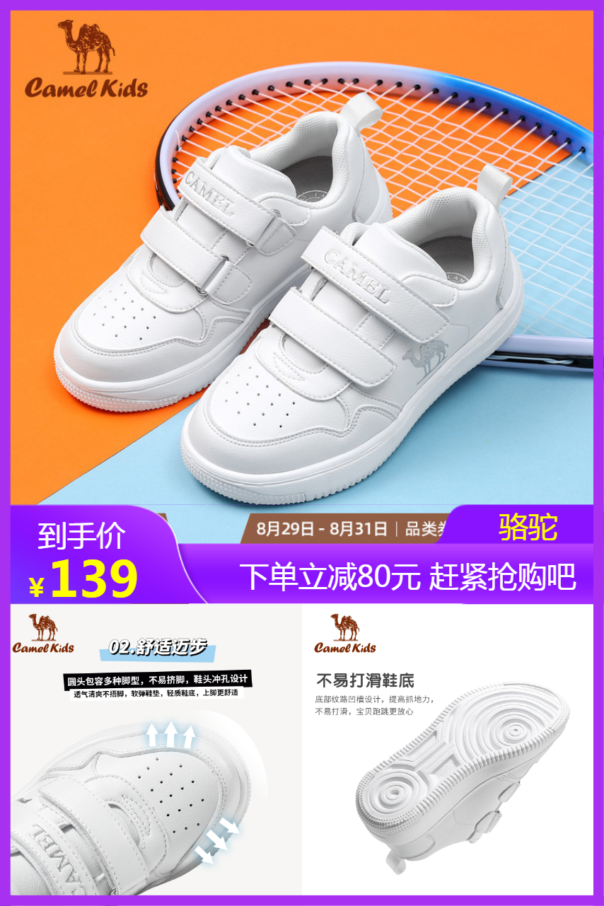 1、【小骆驼,凑单更划算!!】 儿童休闲运动板鞋, 超强透气性,防滑大底, 亲肤内里,轻盈减震,便捷魔术贴, ✌时尚舒适超好穿,黑白两色多款可选!