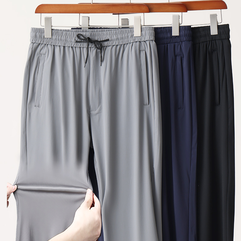 2、(埃尊伯爵旗舰店)夏季冰丝薄款爸爸装松紧腰男士运动休闲长裤中老年裤子男宽松老人