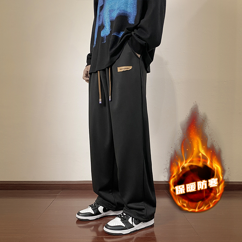 2、(米歌纹旗舰店)抽绳裤子男士秋冬款加绒阔腿卫裤春秋冬季宽松直筒休闲长裤男款