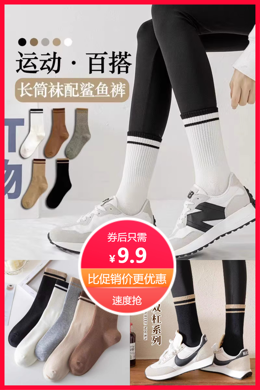 3、舒适又百搭的男女款双杠袜子!女生钟爱的堆堆袜款,可爱又时尚!中筒设计,运动风十足,舒适度满分!网红同款,潮流新宠,不容错过!