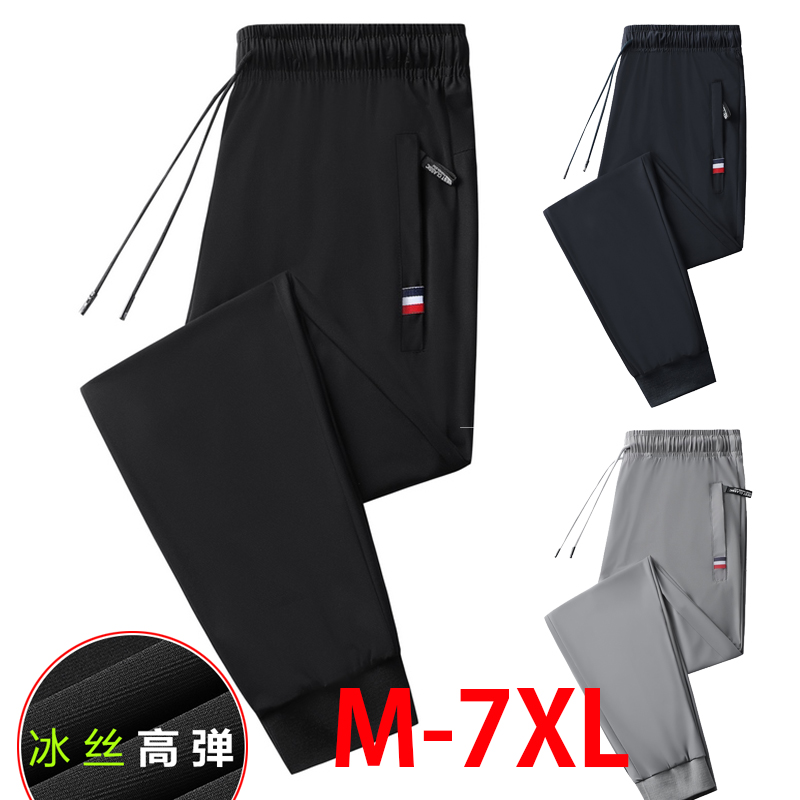锦纶冰丝裤子男士夏季薄款速干透气运动休闲长裤加肥大码空调裤