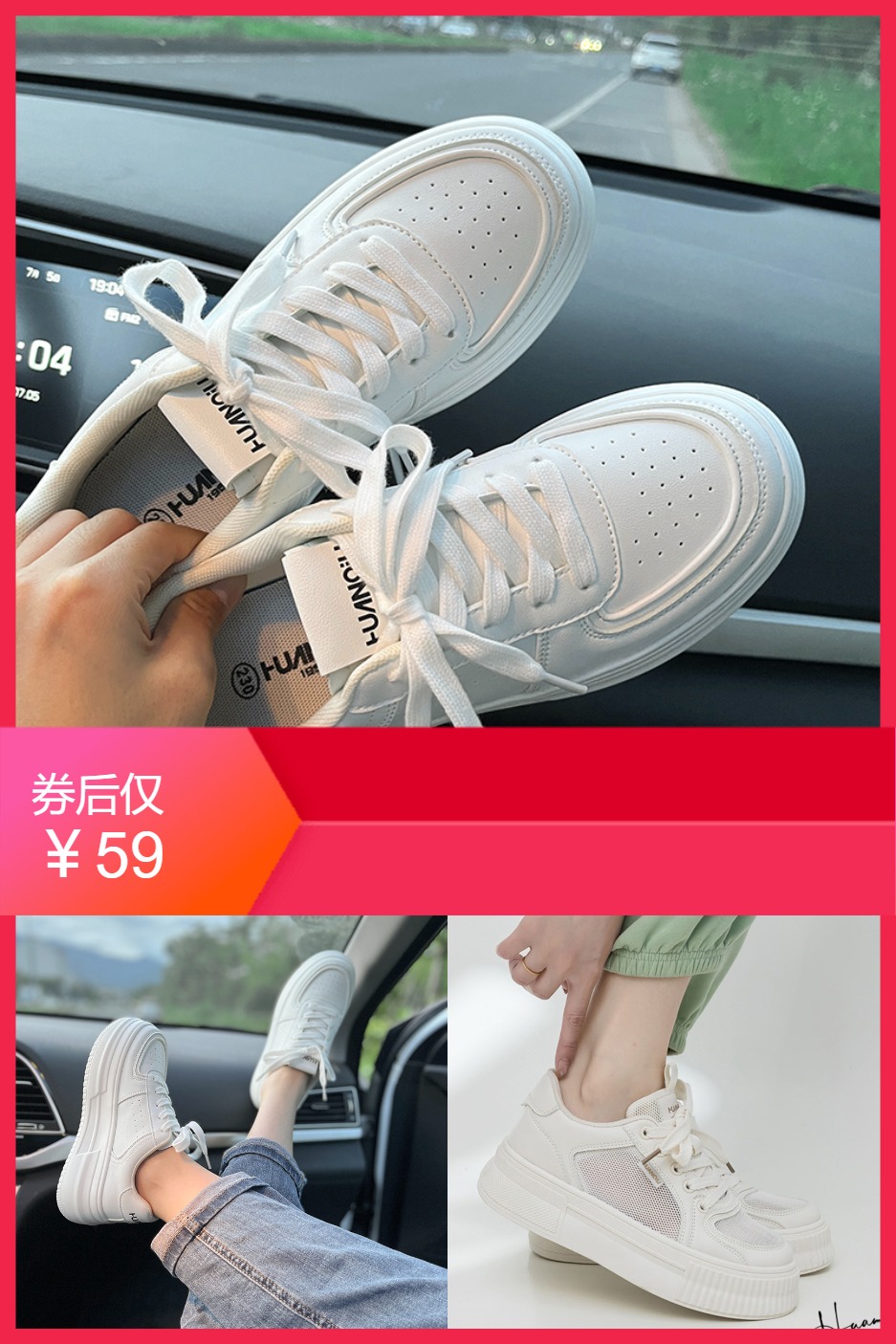2、(千行鞋类企业店)环球厚底小白鞋女超火韩春夏网面配裙子增高百搭厚底休闲运动板鞋