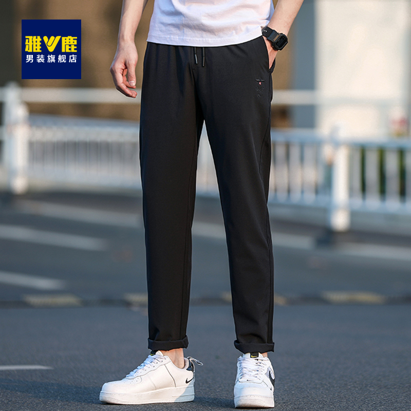 雅鹿休闲裤男2023夏季新款九分裤刺绣薄款修身时尚直筒冰丝长裤子